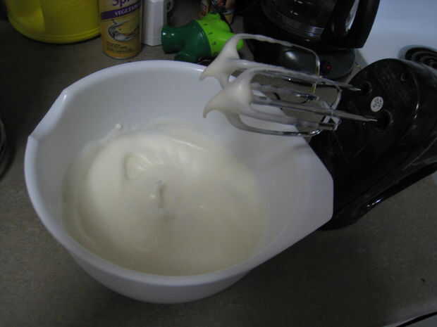2. batir hasta que la mezcla forme picos suaves