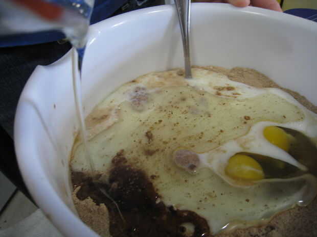 2. en el mismo recipiente, mezclar el resto de los ingredientes hasta que el bateador se convierte en liquidez