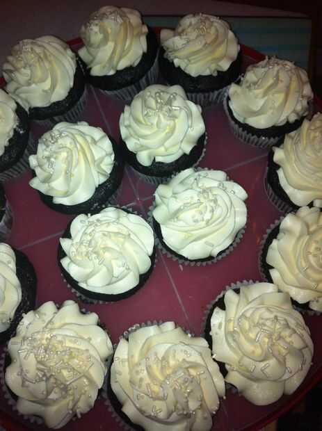 Precalentar el horno a 350 grados y línea estándar latas. Cierna en un recipiente grande cacao en polvo, harina, azúcar, bicarbonato de sodio, polvo de hornear y la sal. Agregue los huevos, agua tibia, suero de leche, aceite y vainilla y mezclar hasta que quede suave. Raspe los lados y parte inferior del recipiente para asegurar la masa se mezcla bien.