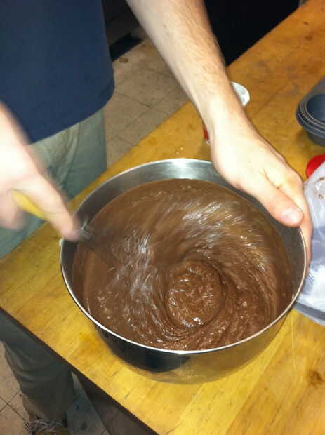 Vierta la mezcla de crema caliente sobre el chocolate finamente picado y bate hasta que quede suave.