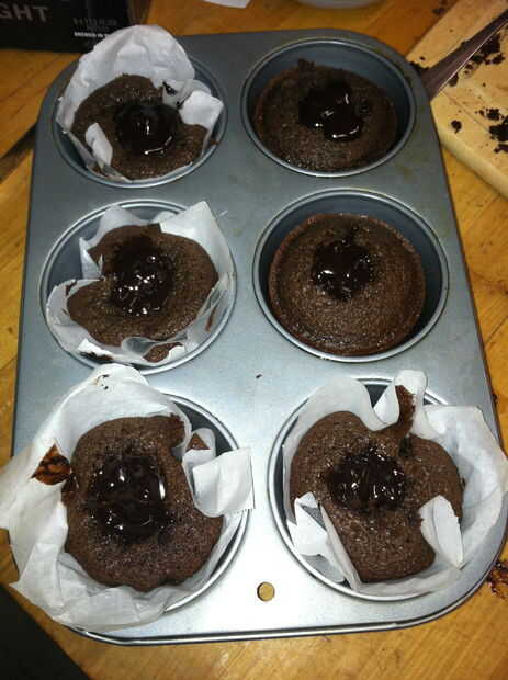 Reducir los centros de los cupcakes refrescados. Corte 2/3rds de la manera abajo, teniendo cuidado de no rasgar los agujeros en el fondo o las paredes donde relleno podría escaparse hacia fuera.
