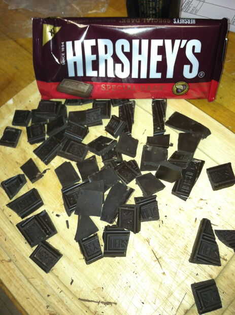 Nota: el chocolate debe ser finamente para facilitar el proceso de fusión cuando se combina con la mezcla de crema caliente. El objetivo es que el chocolate fundir totalmente cuando se agrega la mezcla de crema.