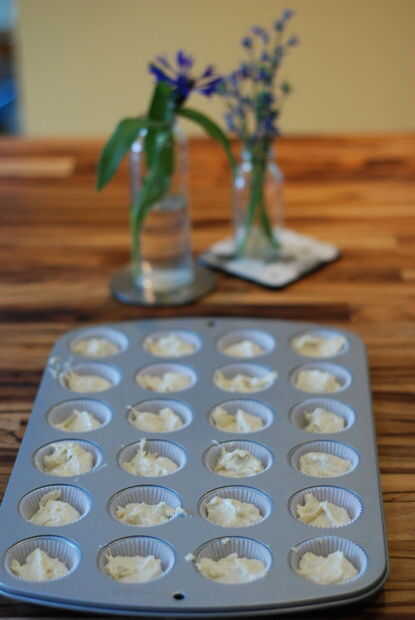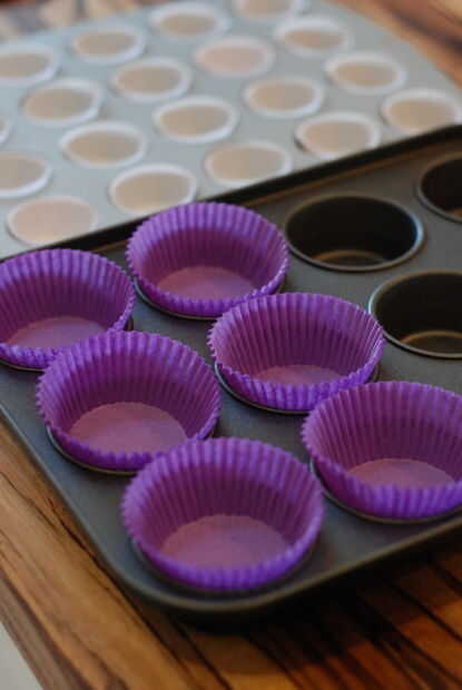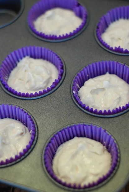 6. Vierta en los casos de la Magdalena, llenando cada uno de cerca de dos tercios llena.