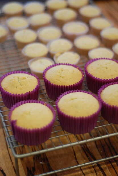 7. hornea en el horno hasta que al inserta una brocheta en el centro salga limpio. Esto me llevó unos 15 minutos para los mini cupcakes y 22 minutos para los grandes.