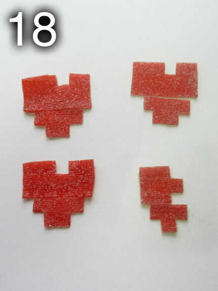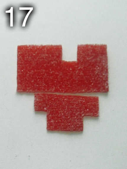 17) cortar una ' t ' forma de otra pieza de dulces para hacer la parte inferior del diagrama 15. Esto es lo que debería ser su corazón de dos partes.