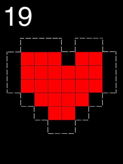 15) este es un diagrama de la forma que intenta hacer de los dulces. La línea blanca punteada indica donde he utilizado dos trozos de caramelo para hacer que cada corazón.