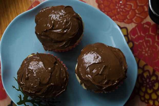 Hornear a 180 C (375 º F) por unos 20 minutos retire sus magdalenas del horno y dejarlos enfriar. Luego se extienden en la parte superior cada cupcakes glaseado chocolate (o nutella)