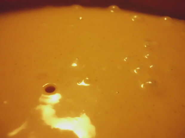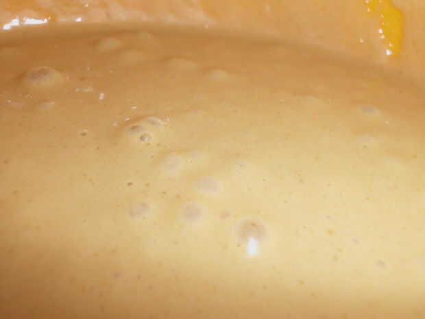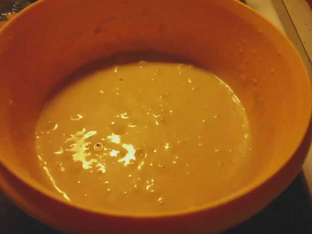 Haya terminado pero mezcla después de un minuto o así, asegúrese de que usted tiene un montón de burbujas poco pegajosas que lentamente están apareciendo en su masa.