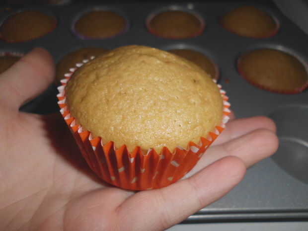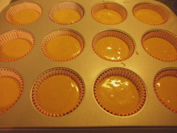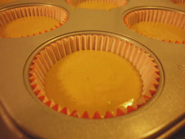 Línea de su lata de cupcake con tazas y llenar cada taza a 3/4 de la forma con la masa. Hornear en un horno precalentado (350° F) durante unos 20 minutos o hasta que un palillo salga limpio.