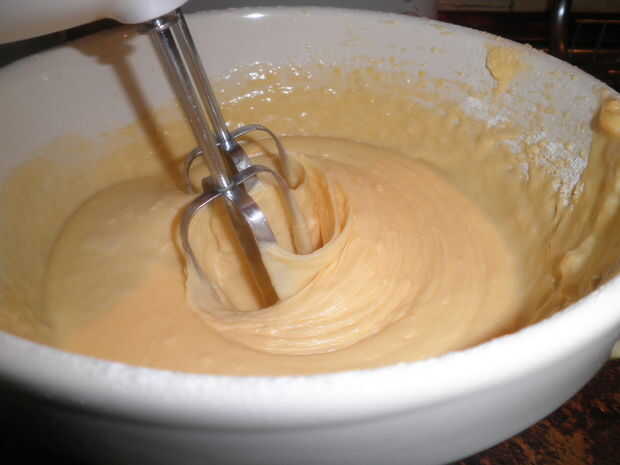 Tamice la harina, el bicarbonato en polvo, bicarbonato y sal en la mantequilla y el azúcar mezclar y mezclar con una batidora eléctrica.