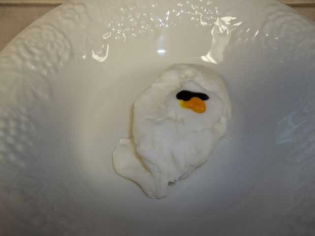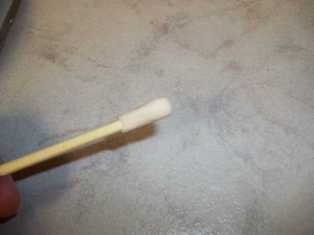 Para crear globos oculares para el uno, forman aproximadamente 1/4 cucharadita de pasta de azúcar teñida en forma de bola. Coloque esta bola en el extremo plano de un pincho. Trabajar el fondant hacia abajo sobre el extremo del pincho presionando firmemente contra la brocheta y pellizque alrededor del palillo. Asegúrese de que esté bien conectada y luego persuadir la punta en una forma redonda. Establecer estos ojo a un lado los tallos secar durante una hora o más hasta que el exterior es firme, seca y la puesta en marcha. (Si saltas directamente a cubrir los tallos del ojo con que mira "piel" llegará rápidamente a ser un lío.)