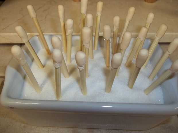 Consejo: Para mantener el uno en posición vertical y evitar bordes suaves o planos, llenar un bol con el azúcar y poner los palillos en el azúcar.