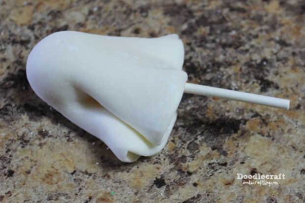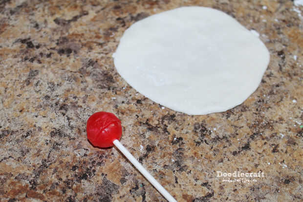 Coger de la Dum-Dum y cubra el círculo de fondant encima de él.
