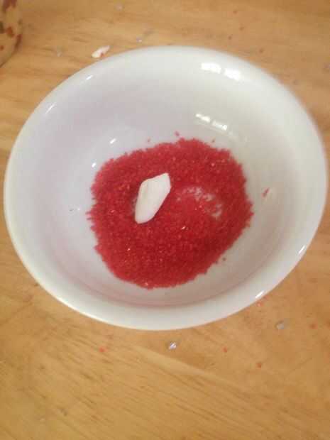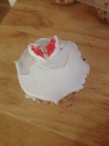 Primero tomar un mini malvavisco y cortarlo en forma vertical. Les sumergen el lado pegajoso de la melcocha en las granas. Luego poner el malvavisco en el Magdalena con los sprinkles que muestra. Llenar la parte superior de la Magdalena por repetir esos pasos. Si usted quiere cortar un malvavisco mitad y sumergir en un color diferente de sprinkles para hacer la media.