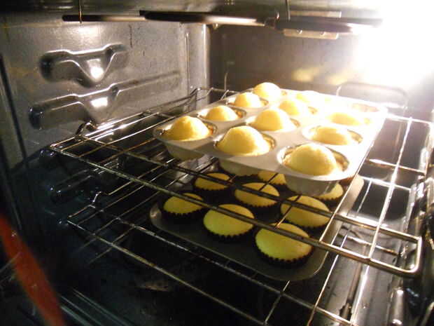 Mezclar esa caja de torta de limón, según las instrucciones en la caja. Vierta en papeles pintados/capa en un molde de Magdalena. Hornear como sigue en la caja. Mientras tanto, mientras que cuece al horno, usted puede mezclar el glaseado! Cuando se hacen los pastelitos de la hornada, apártelas para enfriar.