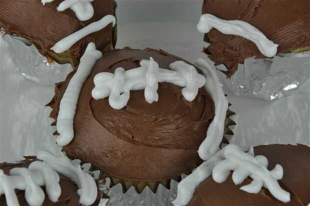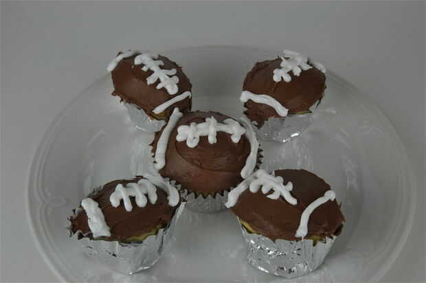 Cuadros 6 y 7 mis cupcakes de fútbol junto a uno para que veáis realmente son fútbol en forma normal, no es un truco de la cámara. En caso de que la gente se pregunta :)