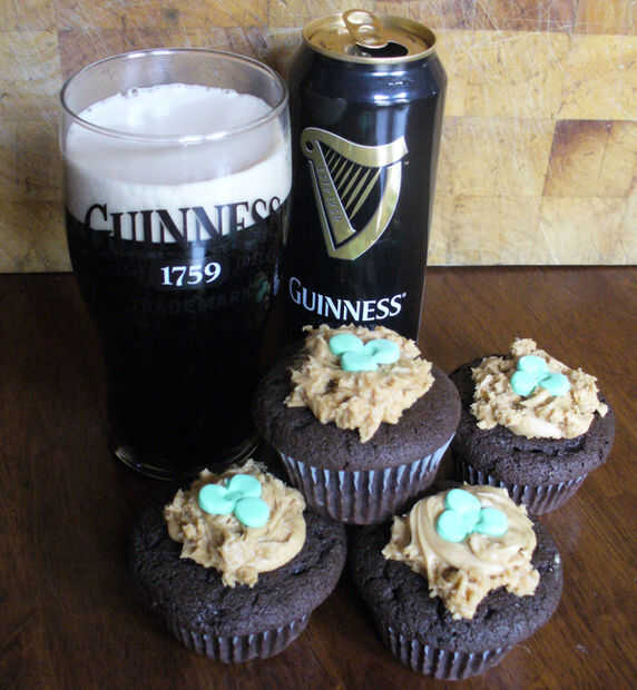 Batir los huevos, el azúcar y la crema agria en un tazón de la batidora. Añadir la cerveza de malto, chocolate y mezcla de mantequilla y bate. Agregue la harina, bicarbonato de sodio y ¾ cucharadita de sal a la mezcla y bata en velocidad lenta. Con espátula de goma, doble mezcla hasta combinar completamente. Dividir la masa entre papeles pintados/capa, llenándolos de T de la forma.
