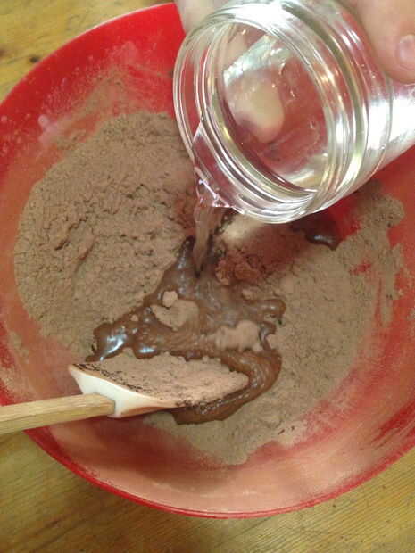 Agregar el agua y revolver hasta que la mezcla esté suave.