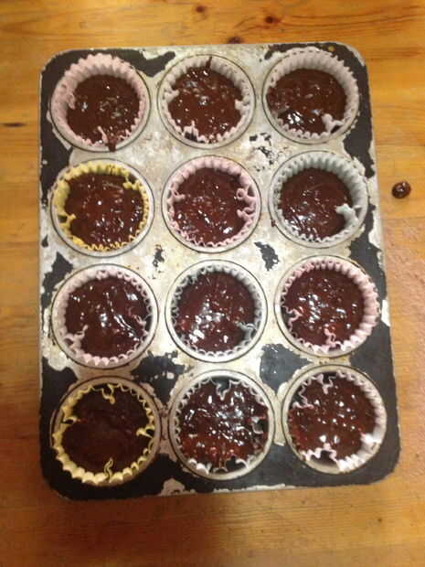 Vierta la mezcla en un molde de cupcake y de nuevo no uso papeles pintados/capa. Hornear durante 35-40 minutos y deje enfriar completamente finalizado.