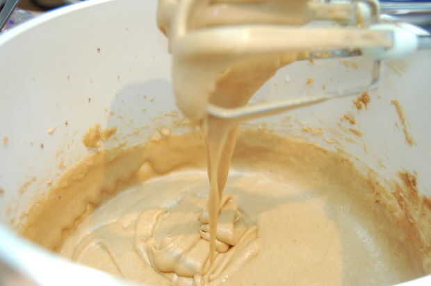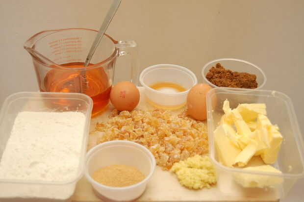 - Batir los huevos y luego gradualmente tamizar la harina y jengibre molido. Por último, agregue el jengibre fresco y confitado y cuchara en los casos de papel preparado.