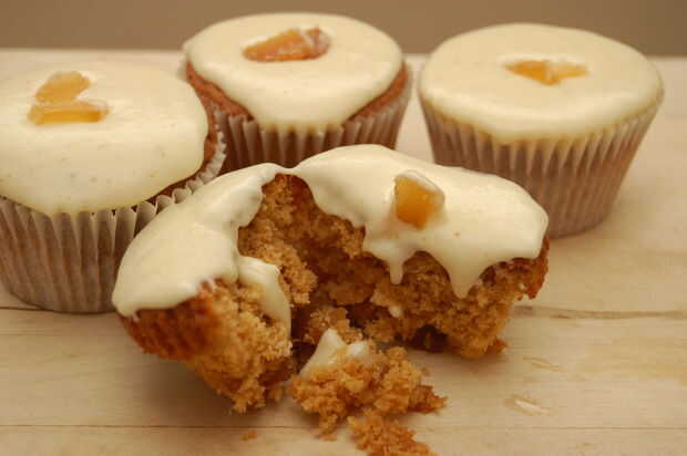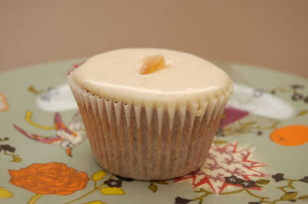 - Decorar con el queso crema de jengibre y crystalised o jengibre astillas del tallo.