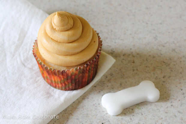 Su bronceado crema tubo un centro ligeramente apagado alto remolino en el Magdalena, entonces utilice una toalla Viva para alisar suavemente las líneas. Simplemente se pone la toalla de papel limpia Viva sobre el hielo funcione con sus dedos a lo largo de él y presione muy suavemente. Entonces pegué un hueso de pasta de azúcar en el punto (yo lo corte por la mitad). Me compré mi pequeño cortador de hueso en una tienda para hornear... pero si no tienes uno podría bastante fácilmente la forma una o incluso hacer un hueso de derretido chocolate entonces refrescado. Si necesita más información sobre la comprobación de método de toalla Viva mi enlace aquí.