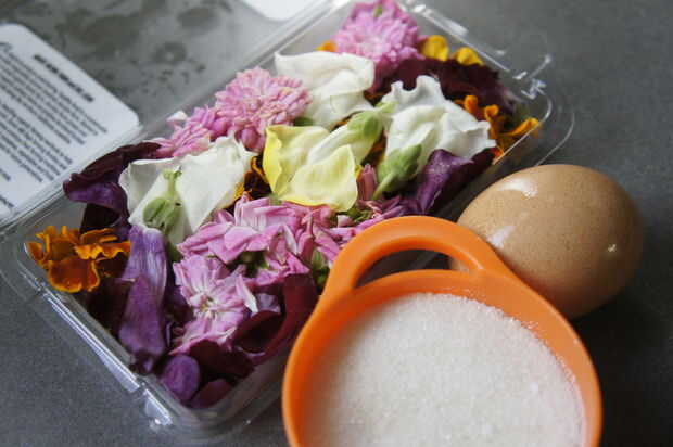 flores comestibles (compré un paquete de flores comestibles de Monterrey mercado de Berkeley)