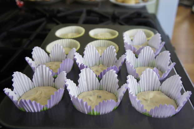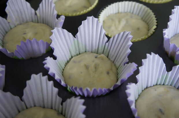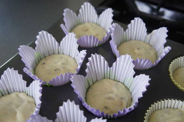 Rellenar panecillos sobre 3/4 completo y hornear 18-20 minutos, hasta que un palillo insertado en el centro, éste salga limpio.