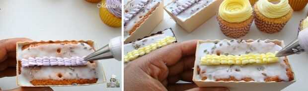 Cupcakes de lavanda limón con glaseado de miel y las abejas del soplo de crema