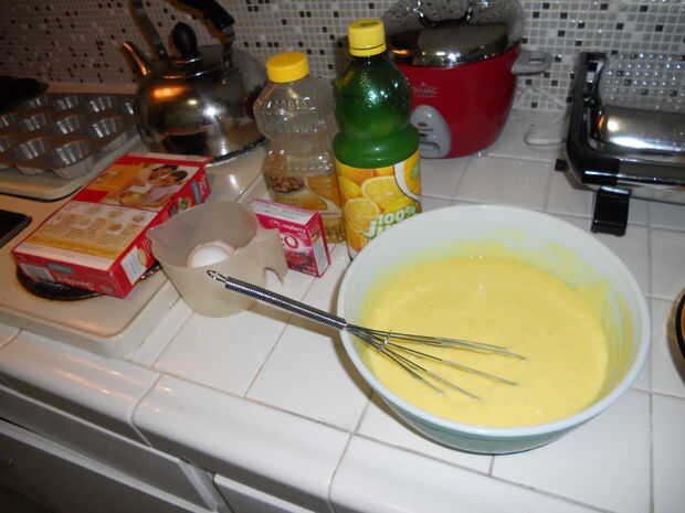 La mezcla del pastel! Sólo tienes que seguir las instrucciones de mezcla y horneadas en la caja. Vierta la masa en papeles pintados/capa, o una bandeja de mini pastel (esto es lo que yo estaba usando).