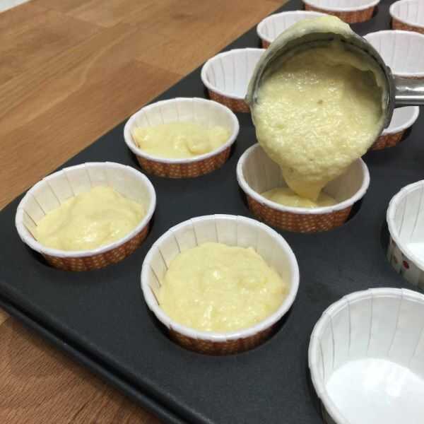 Paso 19: Con una cucharada de helado, cuchara de la mezcla 3/4 completo en los trazadores de líneas de la Magdalena.