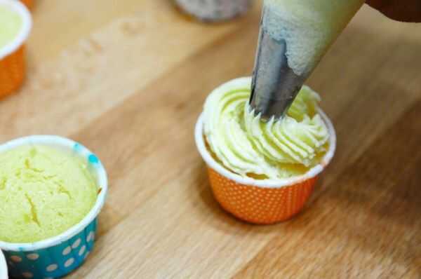 Pipa el glaseado haciendo gruesos remolinos en la parte superior de los cupcakes. Helar actúa como un sello de luz para ayudar a los cupcakes a retener la humedad. Así que ser seguro cubrir el entero expuesto parte de cupcake con glaseado así como los cupcakes se conserve la humedad más tiempo y esto es especialmente útil si se hornean en un evento donde se mostrarán los cupcakes descubierto durante largo periodo de tiempo.