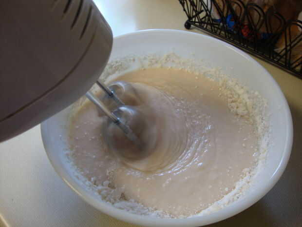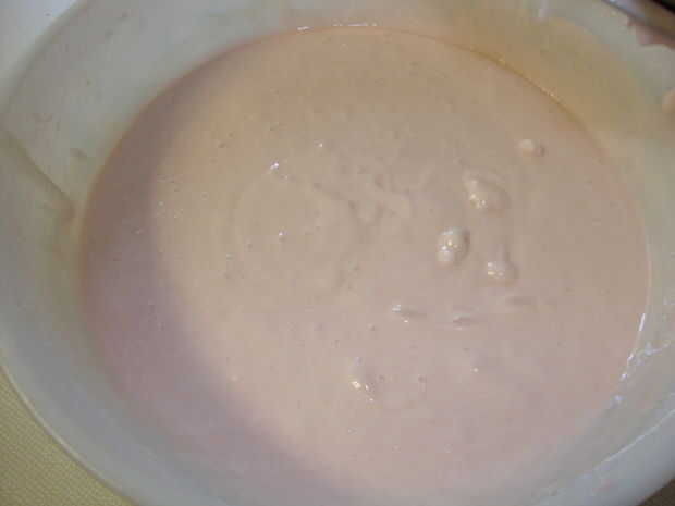 2. Mezcle todos los ingredientes del pastel en un tazón grande. Usando una batidora eléctrica, comienza la mezcla en baja durante 30 segundos, luego aumentar la velocidad al medio por un minuto. Después de terminar de mezclar la masa, puede agregar unas gotas de colorante de alimentos de color rosa para dar a la masa un color rosáceo.