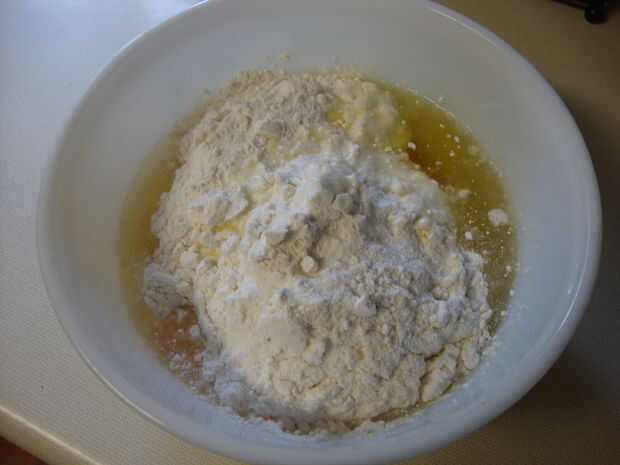 3. dividir la masa uniformemente, los trazadores de líneas de llenado de 2/3 por completo.