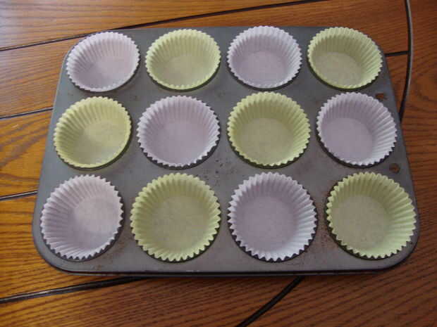 1. precalentar el horno a 350 grados y su lata de mollete con los trazadores de líneas de la línea. (Yo usé una taza 12 uno).