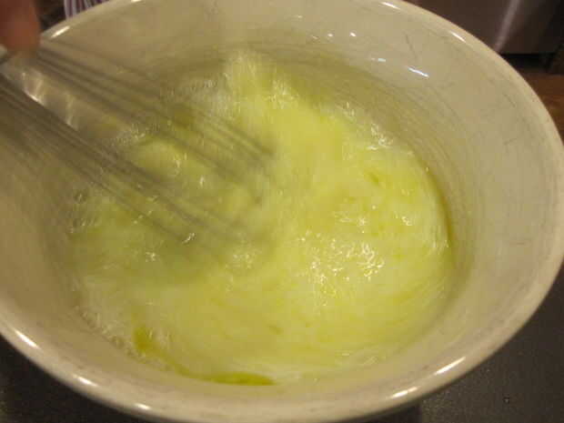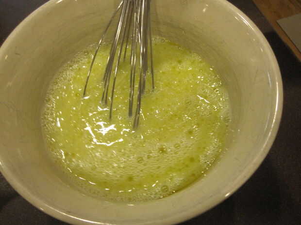 Combinar ingredientes líquidos en un recipiente y wisk juntos.