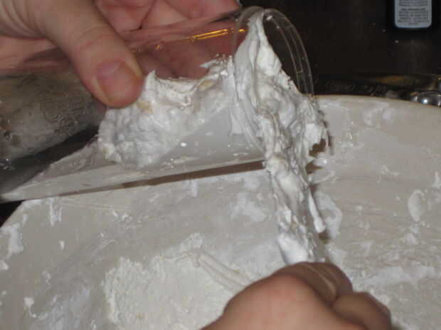 Tamice el azúcar en polvo y sal en un recipiente aparte antes de agregar la crema de malvavisco. La receta hace mucho más de lo necesario, usted puede reducir los ingredientes a la mitad y todavía tienen bastante. Combine los ingredientes restantes y mezcle bien.