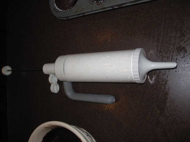 Llenar una manga pastelera con el relleno y reservar. Utilizamos un pastel relleno con una punta de bismark. El relleno es muy grueso y puede ser difícil de usar, ser paciente.