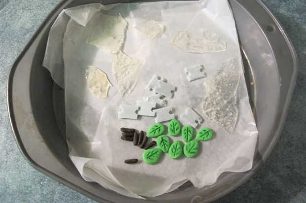 Una vez fresco cuidadosamente despegue la hoja de azúcar pan y dependiendo de cómo espeso el caramelo vidrio es romper con las manos o utilice un martillo para romper en pedazos que se asemejan a fragmentos. Lugar en una hoja forrada hasta listo para usar.