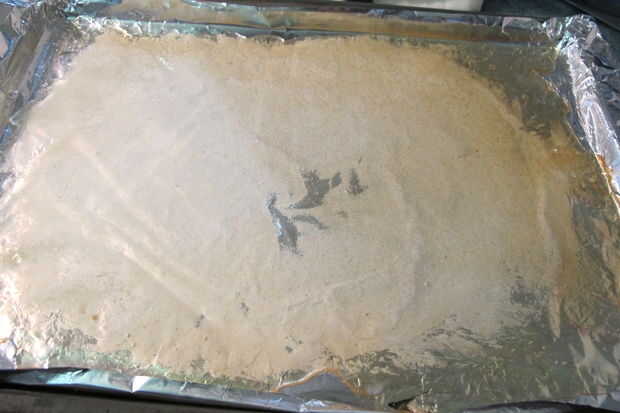 Cuando se alcanza el tempture verter sobre la bandeja para hornear y cuidadosamente incline la hoja para hornear para permitir que el azúcar cubrir la bandeja para hornear. Colocar a un lado para permitir que se enfríe.