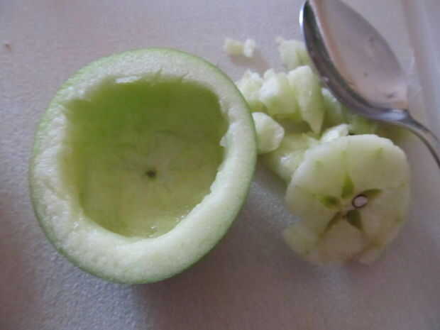 1. en primer lugar preparar sus manzanas por quitar calcomanías y limpiando.