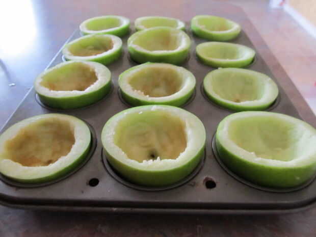 5. Coloque su hueco tazas de manzana en un molde de muffin