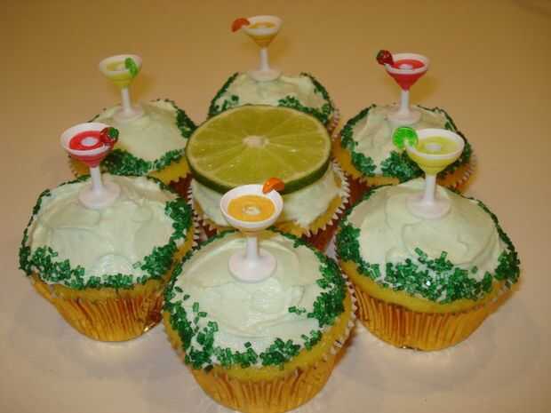 4. pastelitos de escarcha, los bordes del rodillo en granas de azúcar verde y decorar con rodajas de limón