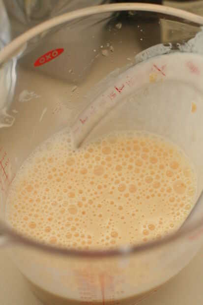 Mezcla en la mezcla de harina en tres tandas, alternando con dos tandas de mezcla de suero de leche. Mezclar hasta que justo combinado, raspando hacia abajo del recipiente como sea necesario. (Me gusta la última parte de la mezcla a mano con una espátula para asegurarse de que obtener todas las cosas en la parte inferior). Cuchara la mezcla en latas de Magdalena.