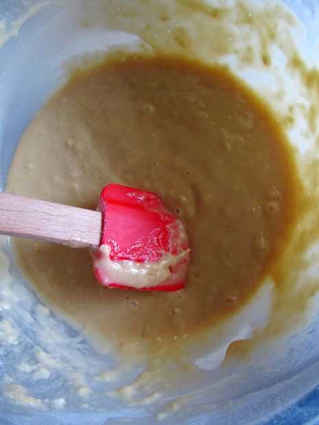 Doblar los ingredientes húmedos a los ingredientes secos hasta sólo combinar.