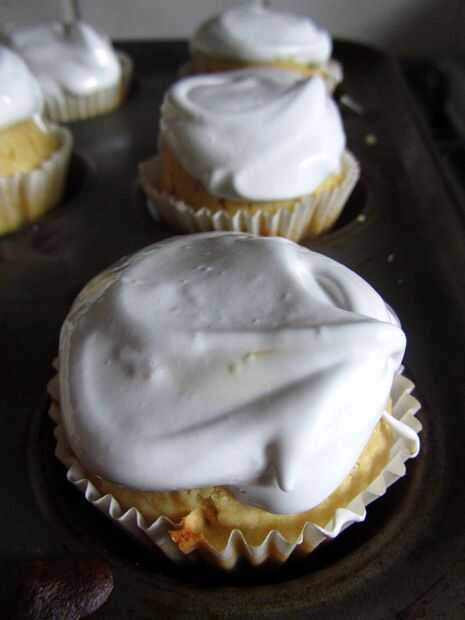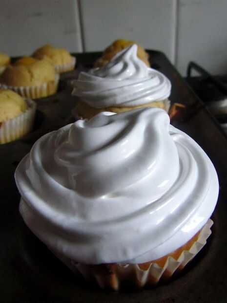 Espolvorear la parte superior del merengue con un poco de azúcar impalpable, devolver las tortas al horno y hornear durante unos cinco minutos, hasta que los merengues estén ligeramente doradas.