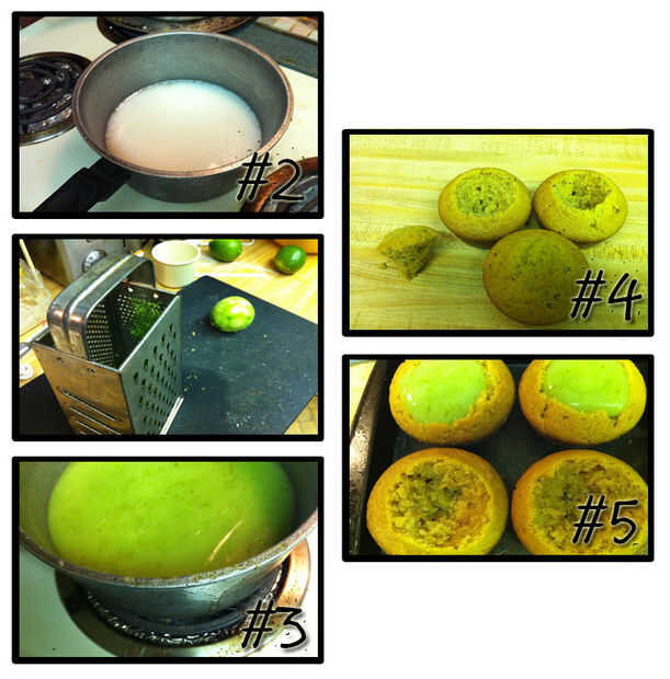 3. mientras se enfría la mezcla de azúcar un poco volver a los cupcakes y sacar un cuchillo. Corte pirámide circular como formas de la mitad para el relleno.