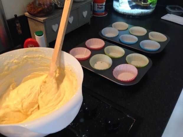 1. precalentar el horno a 350F/180C/Gas 4 y la línea de una lata de 12 hoyos muffin con casos de papel.
