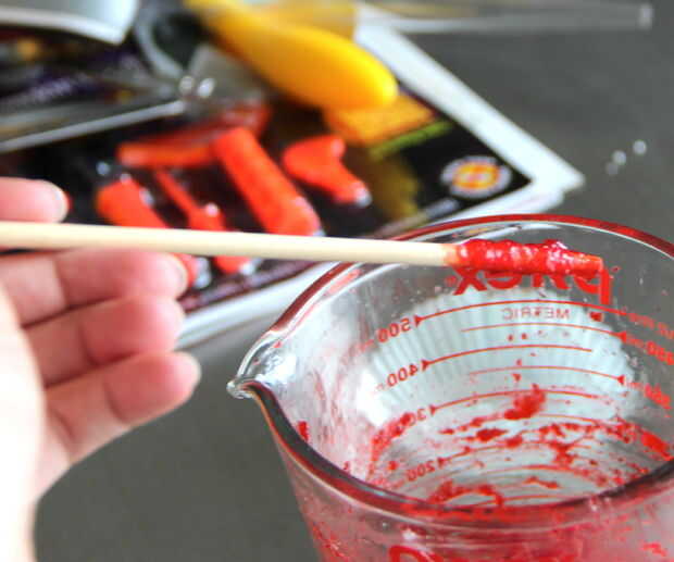 La salsa se piscina alrededor de la mordedura, que le permitirá arrastrar hacia abajo el lado de la Magdalena con el pincho en cualquier dirección que te gusta. :)