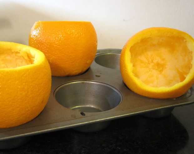 2. Cortar la parte superior de cada naranja y sácale el interior (como si fuera a una calabaza)